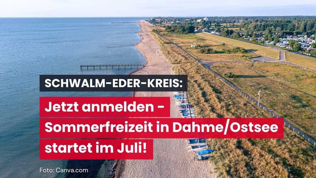 Homberg (Efze), 16.01.2025 – Der Startschuss für die beliebten Jugendfreizeiten in Dahme an der Ostsee fällt: Ab dem 29. Januar 2025 können Eltern ihre Kinder für die drei Sommerfreizeiten im Jugendcamp „Schwalm-Eder“ anmelden. Der Eigenbetrieb „Jugend- und Freizeiteinrichtungen des Schwalm-Eder-Kreises“ bietet die Freizeiten für 11- bis 15-Jährige zu folgenden Terminen an: