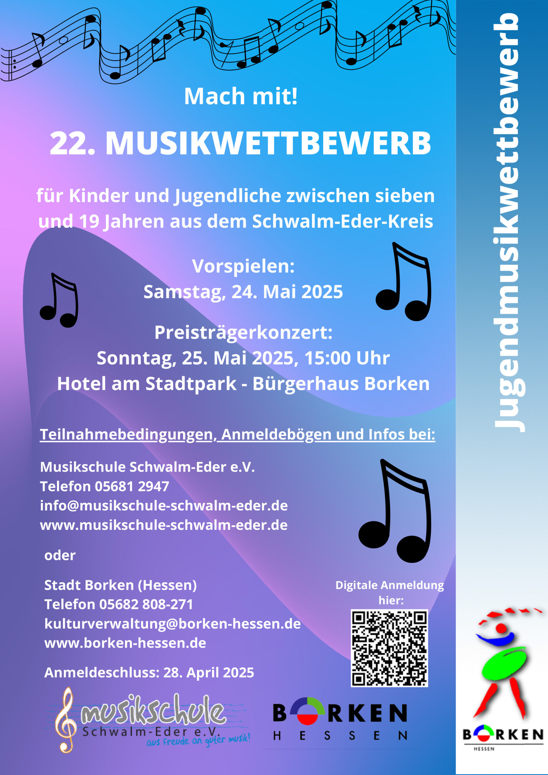 ➡ Online-Anmeldung unter: www.borken-hessen.de/jugendmusikwettbewerb-2025