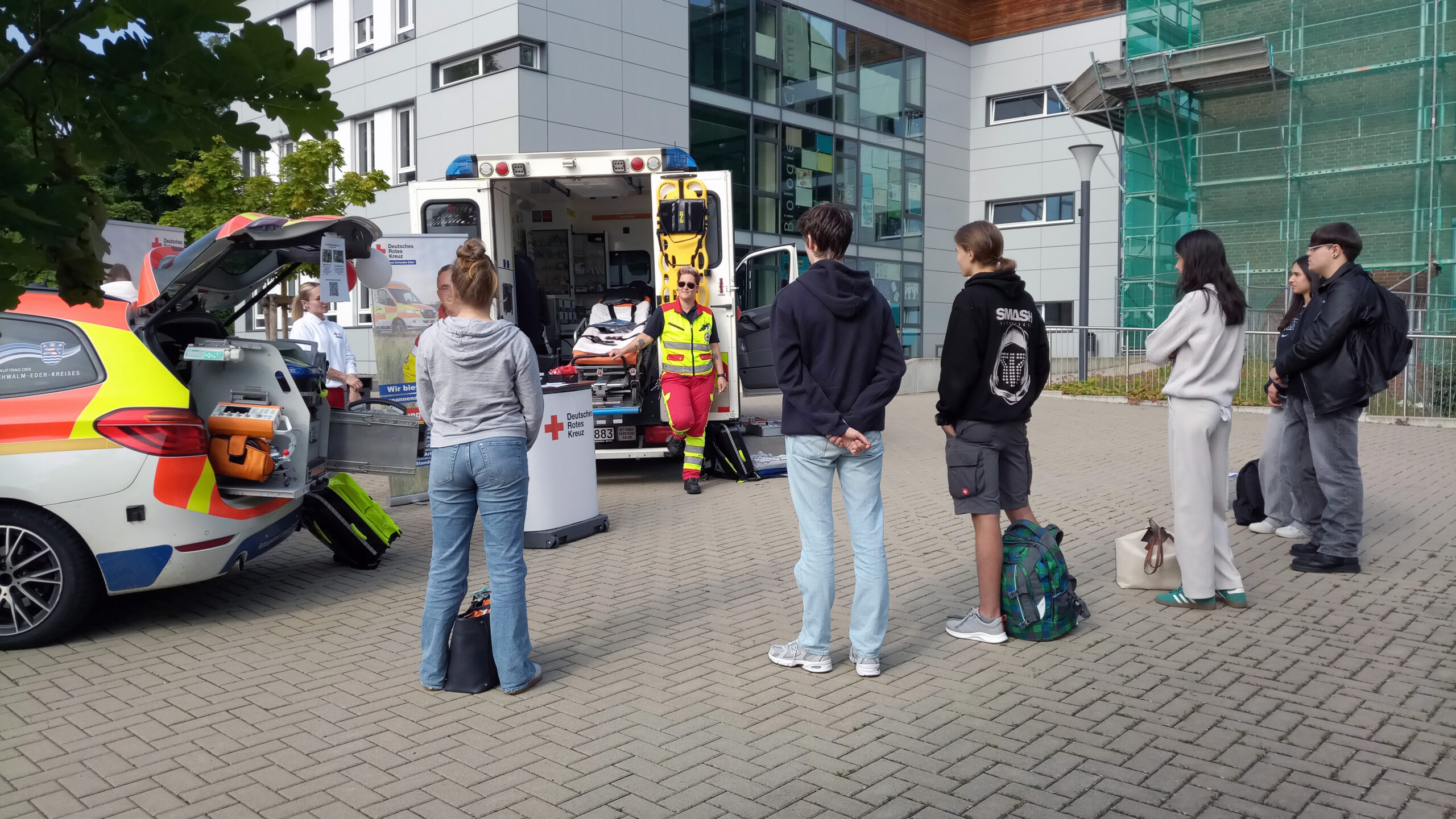 Ein besonderer Anziehungspunkt war in diesem Jahr der Besuch des DRK Schwalm-Eder: Auf dem Schulhof konnten ein echter Rettungswagen sowie ein Notarztfahrzeug besichtigt werden. Zwei erfahrene Rettungssanitäter gaben den Jugendlichen aus erster Hand Einblicke in ihren Berufsalltag – ein Erlebnis, das bei vielen bleibenden Eindruck hinterließ.