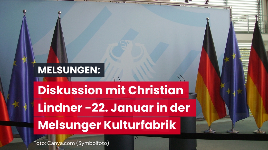 Melsungen – Am Mittwoch, den 22. Januar 2025, wird der Bundesvorsitzende der Freien Demokraten, Christian Lindner, zu einer Veranstaltung in der Kulturfabrik Melsungen erwartet. Der Beginn ist für 14:00 Uhr angesetzt, der Einlass startet ab 13:30 Uhr.