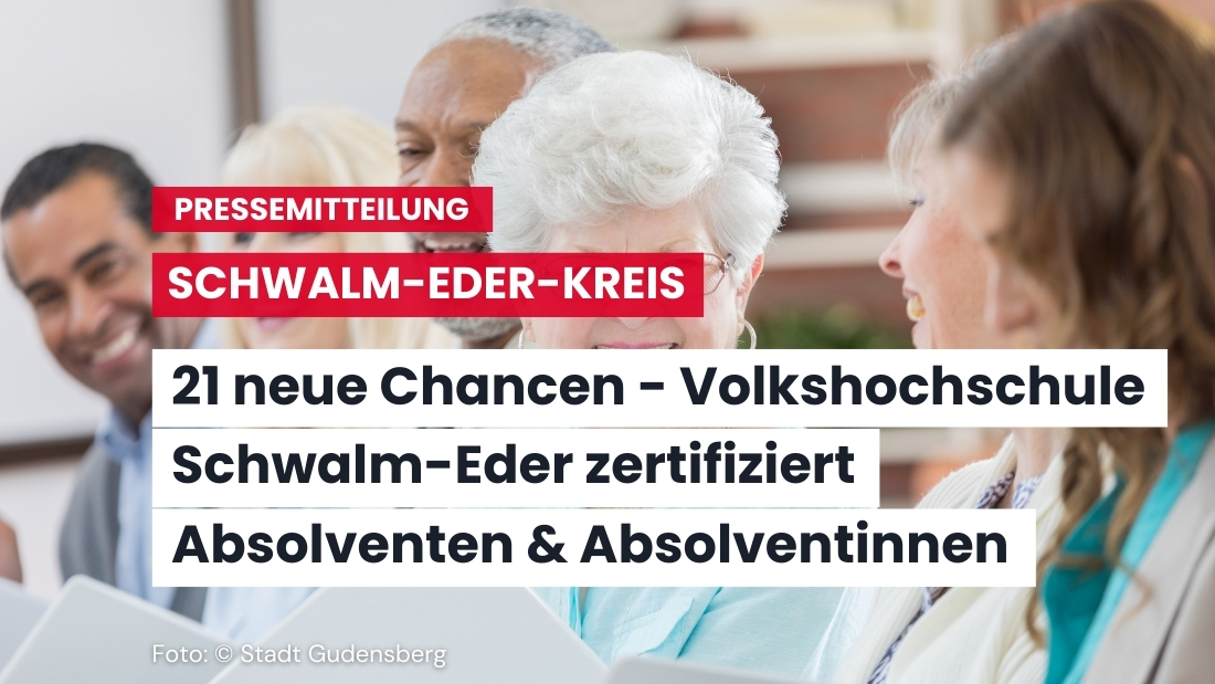 Ob es sich um einen Schulabschluss, den Berufsstart im Bereich der Pflege oder das Fußfassen im pädagogischen Sektor handelt – die Volkshochschule (vhs) Schwalm-Eder hat für verschiedene berufliche Sparten die passende Weiterqualifizierung im Angebot. Zuletzt konnte 21 stolzen Absolventinnen und Absolventen gratuliert werden, „die sich nun auf ihre nächsten beruflichen Schritte freuen können“ so Landrat Winfried Becker, der sich nicht nehmen ließ, im Rahmen einer kleinen Feierstunde Zeugnisse und Zertifikate persönlich zu überreichen.