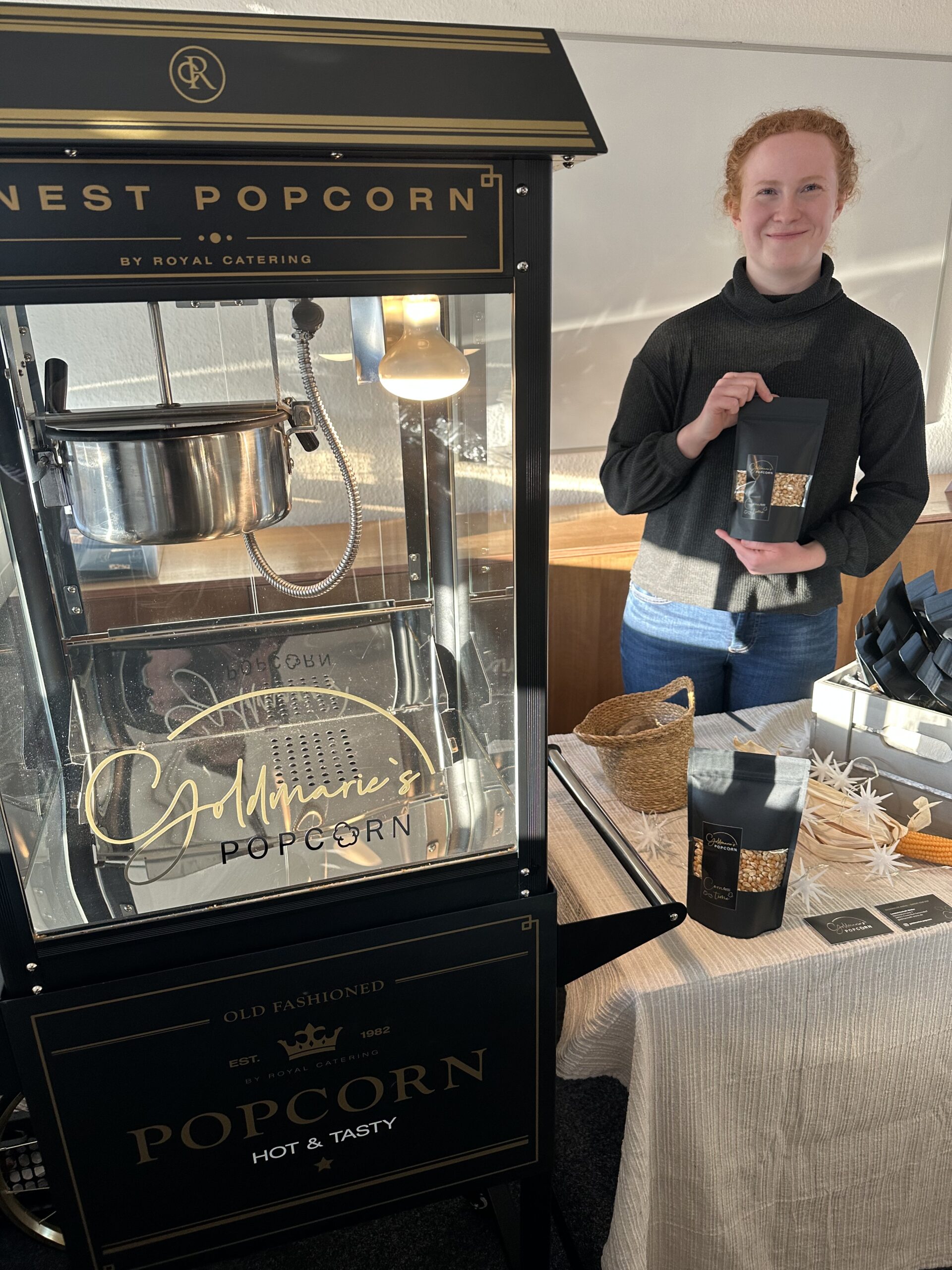 Nach der beeindruckenden Besichtigung wechselten die Teilnehmenden in die Räume des Gründerzentrums Borken, wo sie bereits beim Betreten ein besonderer Duft empfing: Annemarie Möller, eine junge Gründerin (Goldmarie‘s Popcorn) aus Frielendorf-Gebersdorf, hatte eigens für den Abend frisches Popcorn aus eigenem Anbau vorbereitet. Diese kleine Geste unterstrich die Vielfalt und Kreativität der regionalen Gründerszene.
