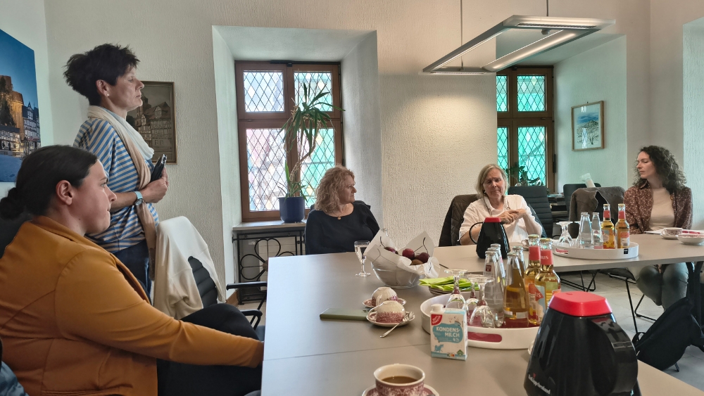 Ihr Besuch stand unter guten Voraussetzungen. Die Erste Stadträtin Serena Sarti und die assoziierte Architektin der Kommune Medicina Elena Farné hatten einen guten Flug, kamen gut in Homberg an und wurden herzlich empfangen. Beide Italienerinnen führte ihre erste Station des dreitägigen Besuches in das Homberger Rathaus. Dort wurden sie von der Ersten Stadträtin Claudia Ulrich, Stadträtin Ulrike Otto, Abteilungsleiter Sascha Zahmel, Fachbereichsleiter Markus Staedt, Klimaschutzmanagerin Christiane Voith, Fachbereichsleiterin Anna-Lena Kuhn, Dolmetscherin Andrea Morra-Hehenkamp und Pressesprecher Uwe Dittmer herzlich begrüßt. Das Treffen diente einem ersten Kennenlernen und dem fachlichen Austausch im Rahmen der Europawochen Hessen 2025, die von der Hessischen Staatskanzlei finanziell unterstützt werden. Und es bildet die Grundlage für eine angestrebte, zukünftige Zusammenarbeit. Die Erste Stadträtin Serena Sarti überbrachte die Grüße von Medicinas Bürgermeister Matteo Montanari und freute sich, dass sie bei einem so wichtigen Thema wie dem Klimaschutz dabei sein durfte.