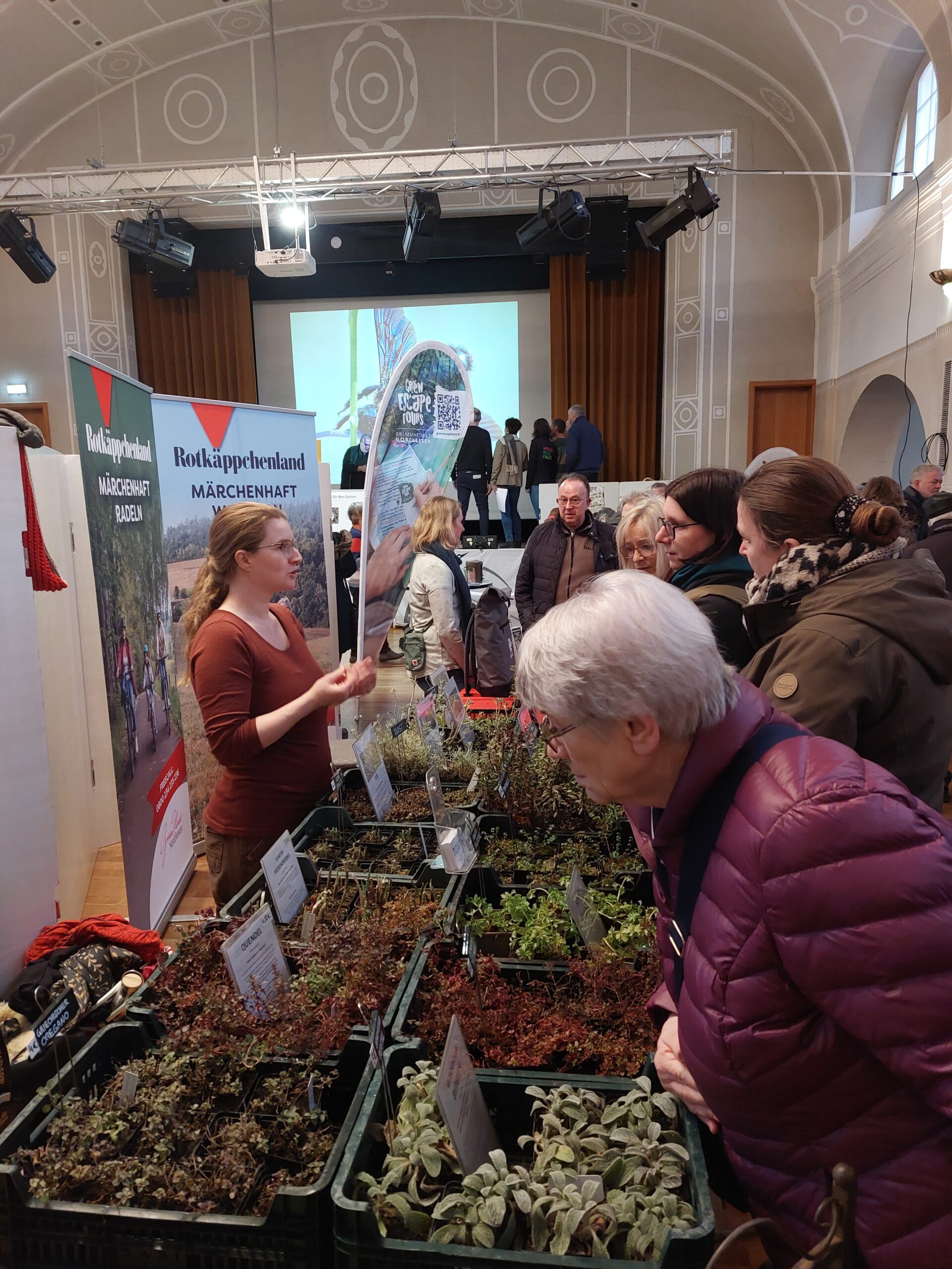 Gut besucht waren die beiden Impulsvorträge von Hans-Joachim Schade (Naturgarten e.V.) im kleinen Saal der Stadthalle. Er gab wertvolle Praxistipps, wie der eigene Garten naturnah gestaltet werden kann. Moderator Dierk Glitzenhirn vom Evangelischen Forum Schwalm-Eder kam zwischendurch mit Standbetreiber/innen ins Gespräch. Ein Gesprächspartner war der Verein NATUR im GARTEN, der besonders artenreiche Gärten zertifiziert. Mit Unterstützung des Evangelischen Forums Schwalm-Eder und dem Naturpark Knüll konnten 10 Zertifizierungsbesuche im Wert von je 100 Euro verlost werden.