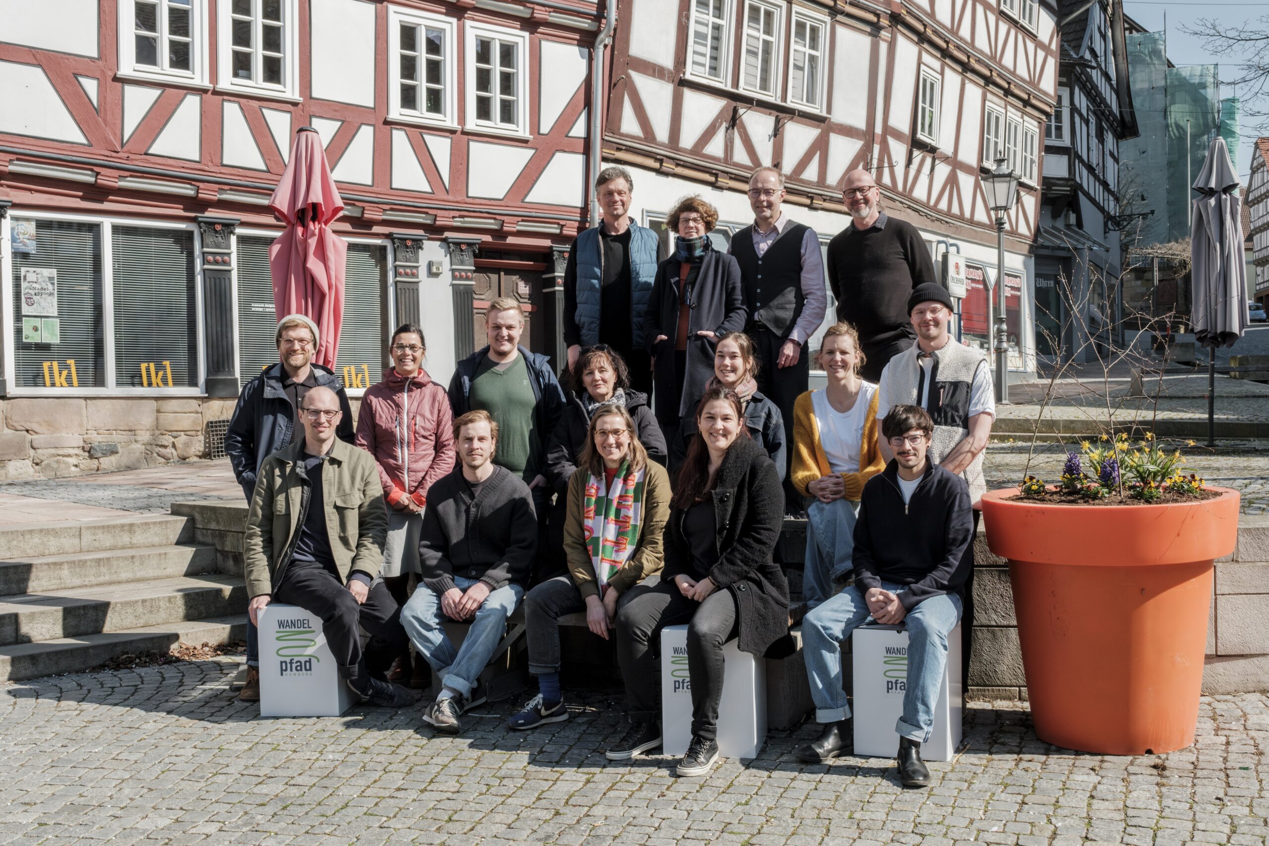 Am ersten Tag stellten alle Teilnehmenden aus Homberg (Efze), Neuruppin, Nürnberg und Stuttgart ihre Modellprojekte vor und erläuterten sie. Die vier NPOW-Projekte berichteten über ihre Erfahrungen und Strategien. Die Stadt Homberg (Efze) stellte mit Fachbereichsleiter Markus Staedt ihr Projekt „Kleinstadt im WANDEL – Von der Kleinstadt zur WANDELstadt“ vor und er führte die Gäste anschließend auf einen Rundgang zu den Interventionsorten in der Stadt. Mit dabei wurde auch das Gebäude “Zaubergarten” in der Untergasse vorgestellt, ein von der Stadt erworbenes Gebäude, welches Teil eines zu entwickelnden Mikroquartiers ist. Die Gruppe der Teilnehmenden besuchte die drei Geschäftsräume der sogenannten Raumstipendiaten, drei Gründer*innen, die in der Innenstadt Hombergs mit ihrer Gründungsidee ihre Selbständigkeit starteten und damit einen Beitrag zur Wiederbelebung leisten. Die städtische Projektverantwortliche Christiane Voith führte die Gruppe zu den Gründerinnen, die durch ein Raumstipendium gefördert werden, d.h. fast alle Kosten der Raumnutzung, wie Miete, werden vom Förderprogramm bis Oktober 2025 übernommen.