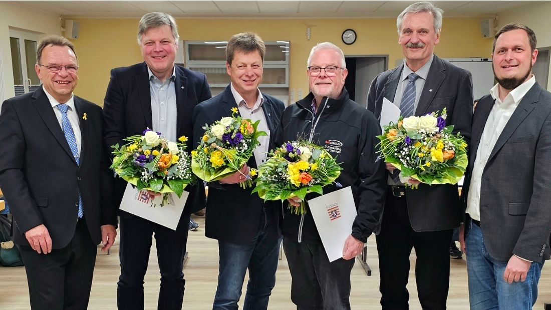 Im Rahmen der Gemeindevertretersitzung zeichnete Landrat Winfried Becker langjährige Mandatsträger der Gemeinde Jesberg mit dem Ehrenbrief des Landes Hessen aus.
