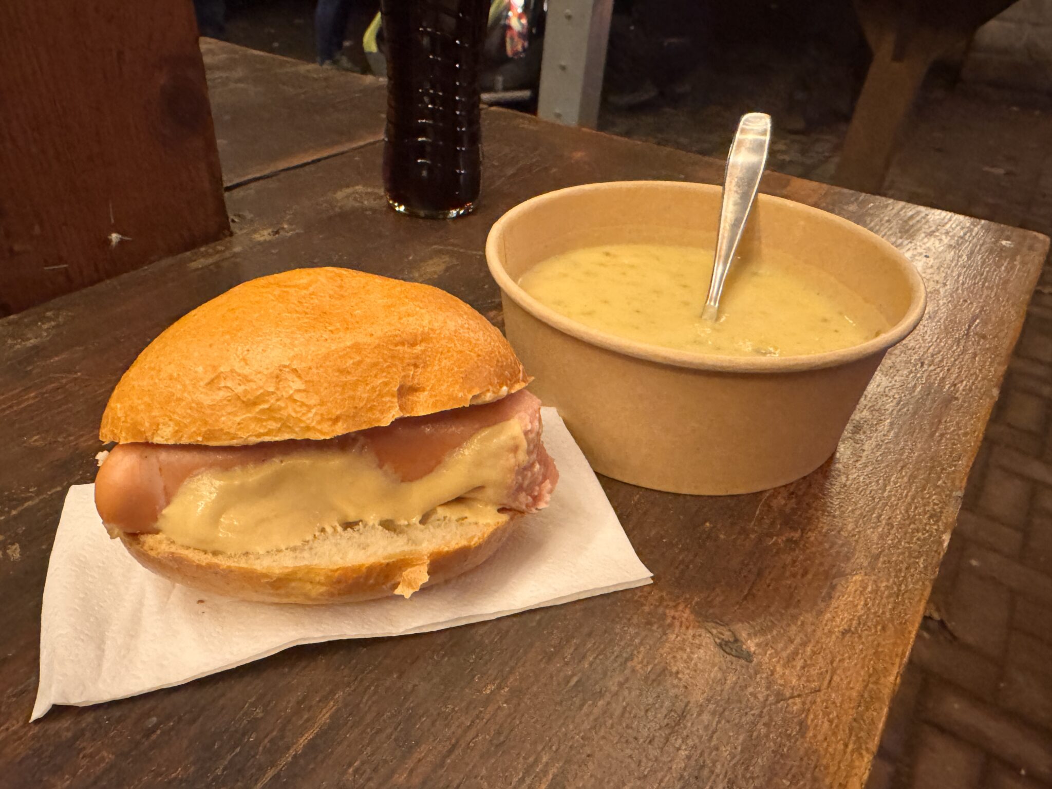 Ein besonderes Highlight des Abends war die kulinarische Verpflegung. Die heiße Kartoffelsuppe – wahlweise mit oder ohne Bockwurst – fand große Zustimmung bei den Wanderern. Dazu wurden eine Auswahl an Getränken angeboten, die den geselligen Teil des Abends abrundeten.