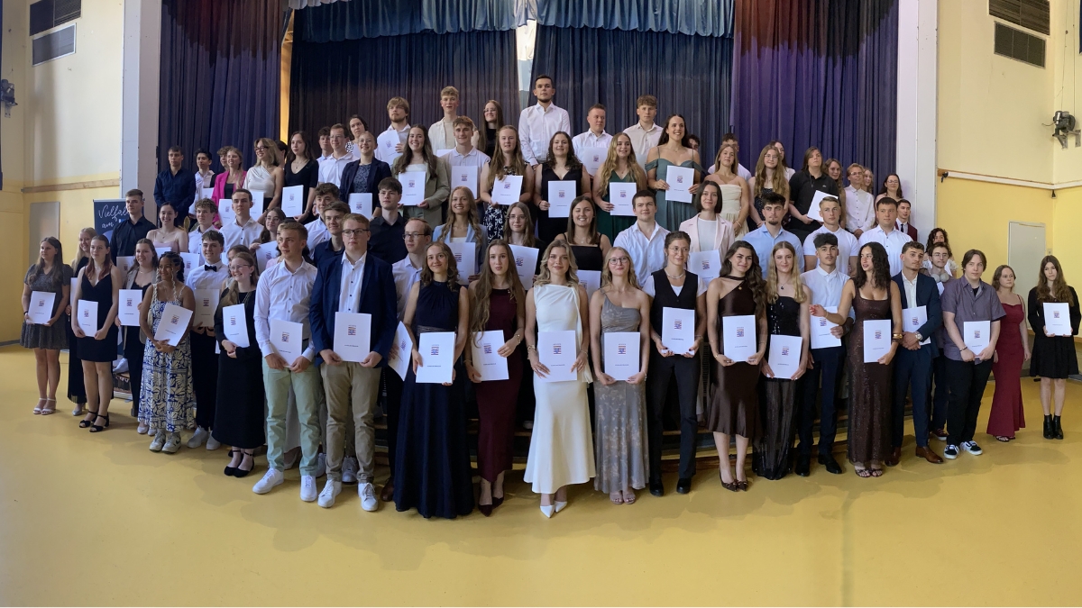 In feierlichem Rahmen überreichten Schulleiter Mario Cimiotti, Studienleiter Dr. Michael Funke sowie die Tutorinnen und Tutoren in diesem Jahr die 85 Abiturzeugnisse, 30 davon mit einer Eins vor dem Komma, sieben sogar mit der Traumnote 1,0: Emily Berg, Jakob Schwalm, Hannah Busch, Elisa Manz, Catalina Walde, Emily Lemke und Theresa Körner konnten diesen beeindruckenden Erfolg für sich verbuchen. Auch andere Absolventinnen und Absolventen durften Auszeichnungen und Ehrungen für besondere Leistungen in verschiedenen Bereichen entgegennehmen.