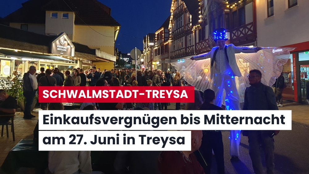 Schwalmstadt-Treysa – Am Freitag, den 27. Juni 2025, finden das Moonlight-Shopping und das Johannisfest gemeinsam in der Treysaer Innenstadt statt. Gefeiert wird in der Bahnhofstraße und Teilen der Wagnergasse.