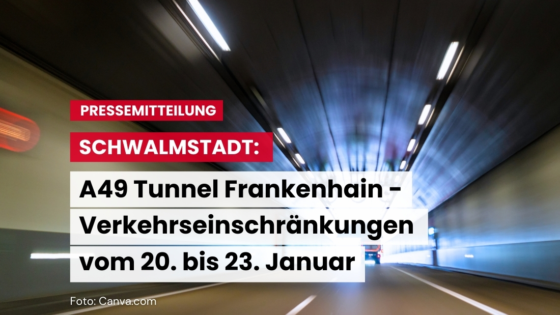 Schwalmstadt – Im Zeitraum vom 20. bis 23. Januar 2025 kommt es aufgrund geplanter Wartungsarbeiten am Tunnel Frankenhain zu nächtlichen Vollsperrungen. Betroffen sind beide Fahrtrichtungen: