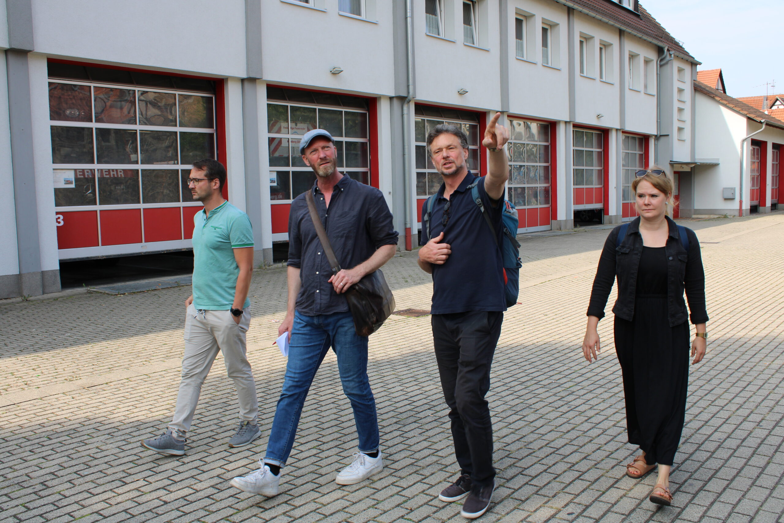 Dabei sprachen sie über die Arbeit von Studierenden des Masterstudiengangs der SRH Hochschule Heidelberg. Die Abschlussarbeiten mündeten in einer Ausstellung und zeigten „Zukunftsideen“ zur künftigen Neunutzung des Feuerwehrstützpunktes an der Wallstraße, einem der Orte, die einem Wandel unterzogen sein werden. Prof. Marc Kirschbaum hatte diese Modelle und Pläne mit seinen Studenten vom Masterstudiengang erarbeitet. Die Ausstellung zeigte spannende Nutzungsideen in Modellform, die einen teilweise ikonischen und archaischen Umgang mit der Gebäudestruktur des aktuell noch bestehenden Feuerwehrstützpunktes aufweisen. Vom Hostel über die Idee des Hotels bis hin zur Busstation sind in der Ausstellung viele Modellideen und Pläne zu sehen gewesen, die zum Weiterdenken und Diskutieren anregen.