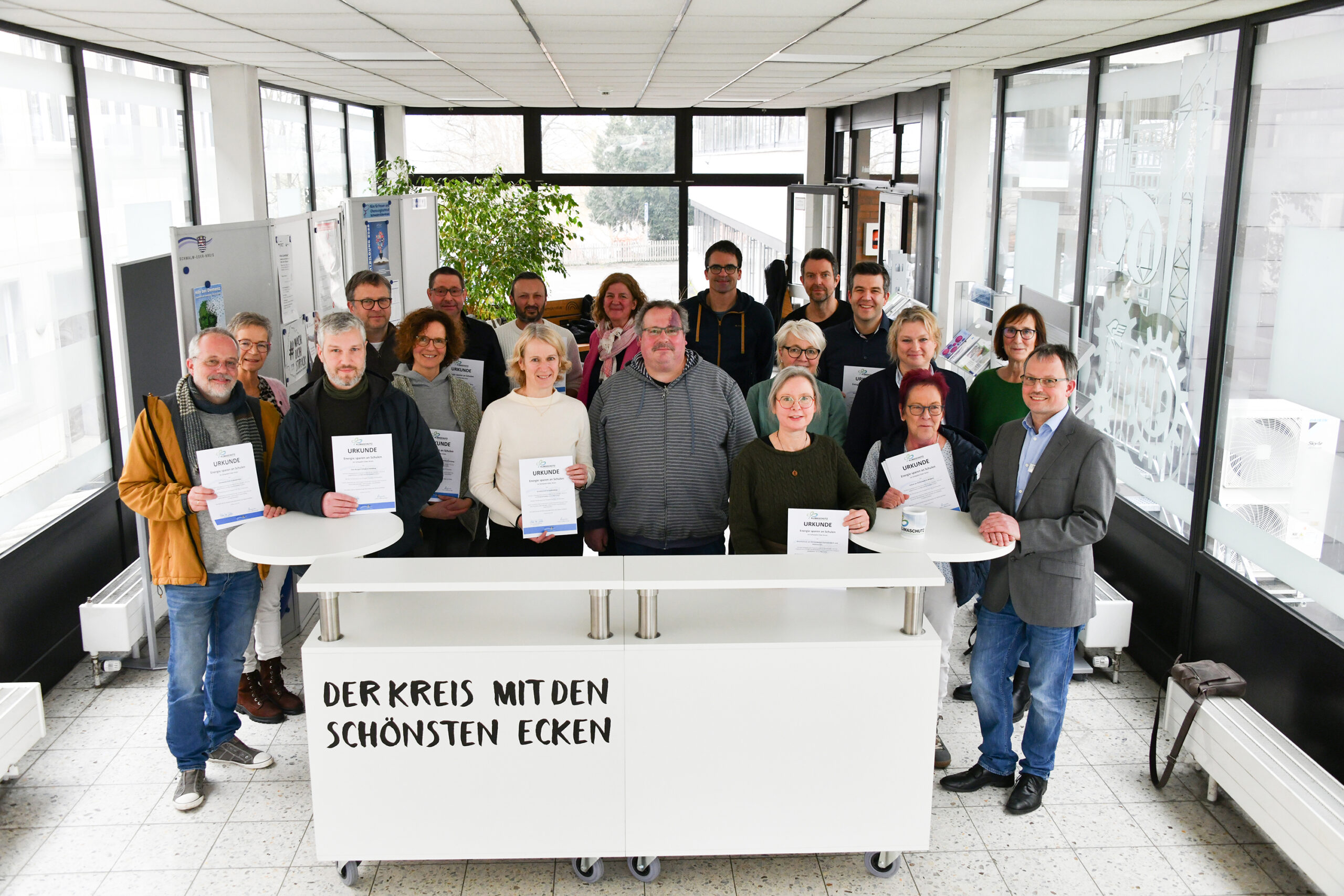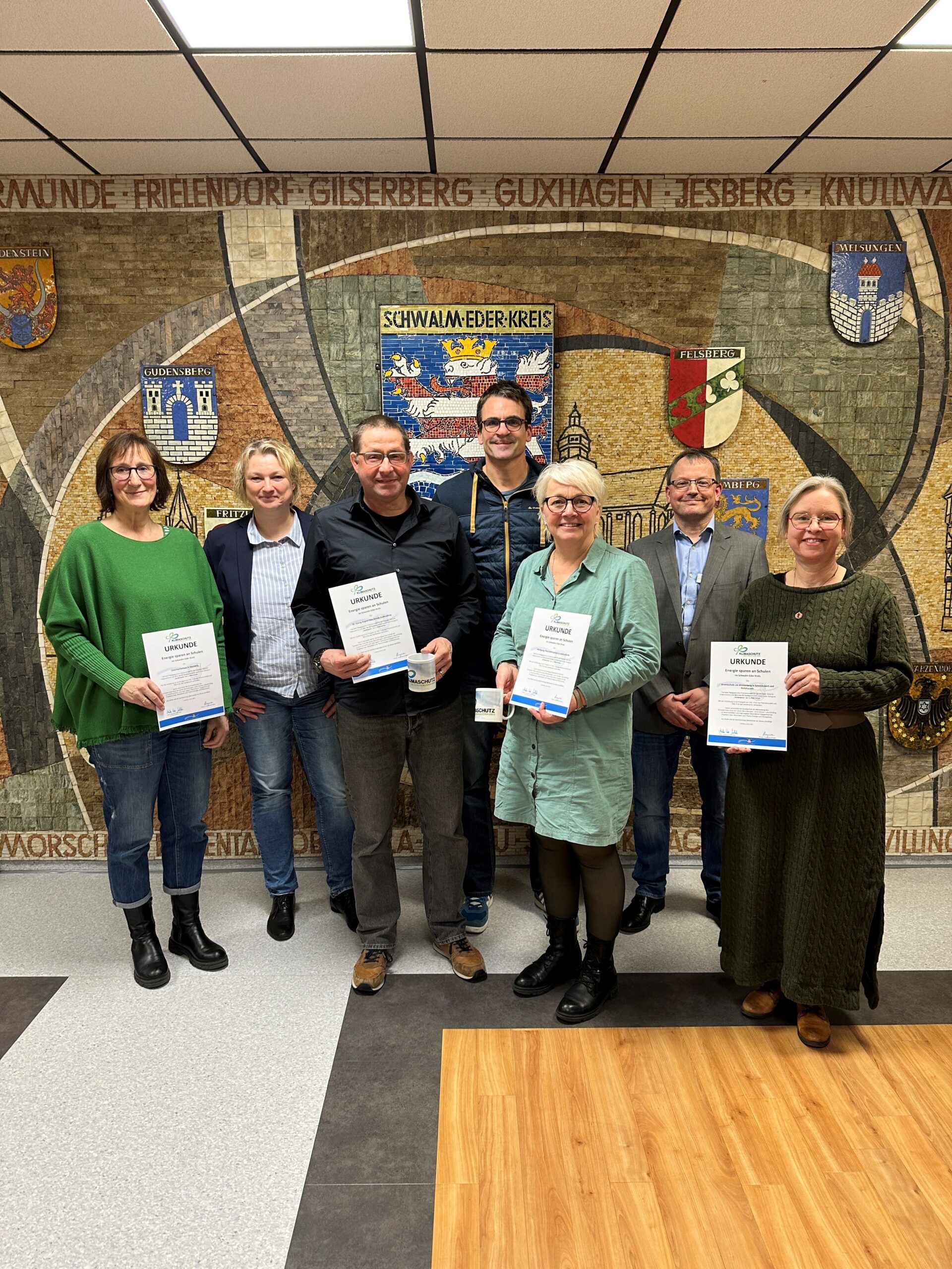 Während einer Feierstunde kamen Vertreterinnen und Vertreter der ausgezeichneten Schulen in die Kreisverwaltung Homberg, um ihre Urkunden entgegenzunehmen und die Höhe der jeweiligen Prämie zu erfahren, die vom Schwalm-Eder-Kreis an die einzelnen Schulen ausgezahlt wird.