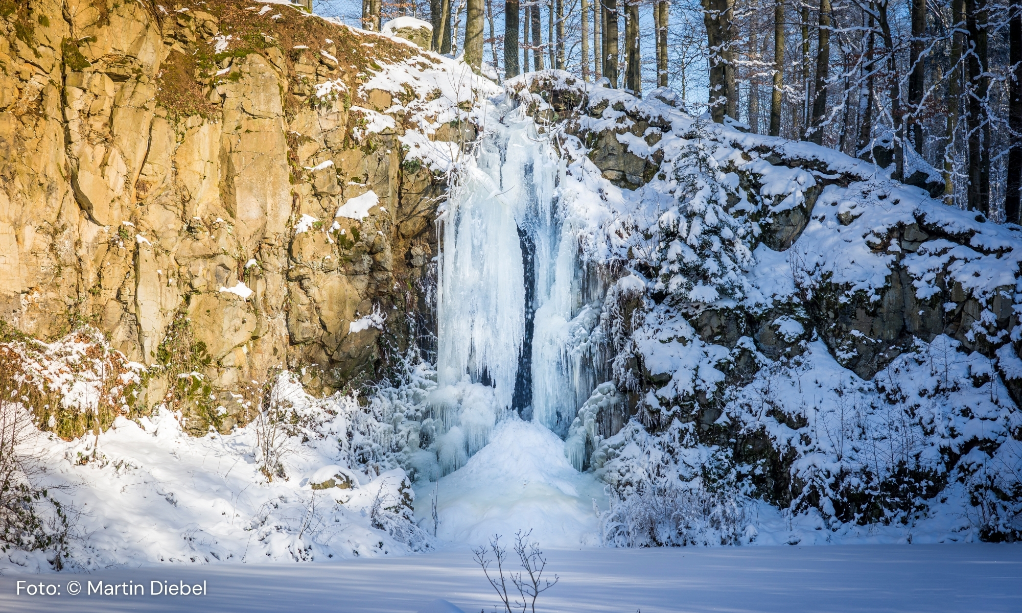 Der zugefrorene Wasserfall in Neukirchen-Christerode ist ein seltenes Naturschauspiel, das jeden Betrachter in seinen Bann zieht. Dieses beeindruckende Foto wurde von Martin Diebel aufgenommen und zeigt, wie faszinierend die Natur sein kann, wenn Temperaturen das Wasser in Eis erstarren lassen. Die klare Winterluft, die schneebedeckten Felsen und die glitzernde Eisfläche schaffen eine märchenhafte Kulisse.