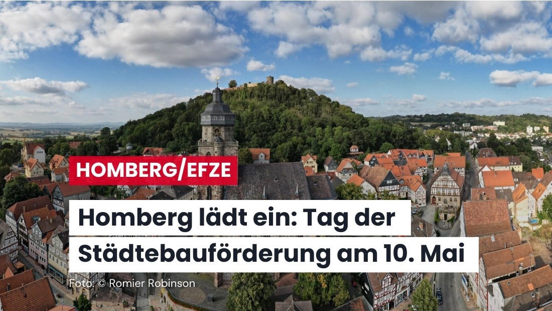 Die Stadt Homberg (Efze) nimmt auch in diesem Jahr am Samstag, 10. Mai 2025, in der Zeit von 14:00 bis 18:00 Uhr am nationalen Tag der Städtebauförderung teil. Dabei steht im Fokus des Engagements das Motto des diesjährigen Tages der Städtebauförderung: Lebendige Orte und starke Gemeinschaften. Damit möchte die Stadt Homberg (Efze) gemeinsam mit zivilgesellschaftlichen Akteuren neue lebendige Orte in der Innenstadt als Grundlage für eine starke Stadtgemeinschaft fördern. Dabei ist die Schaffung von neuem Wohnraum ebenso wichtig wie die Entwicklung von Orten, die sich im Wandel befinden. Die Gestaltung von Parks und Plätzen trägt zur Verbesserung des Klimas und der Lebens- und Aufenthaltsqualität bei. Deshalb werden an diesem Tag exemplarische Projekte vorgestellt, die aufzeigen, wie neuer Wohnraum geschaffen, der Stadtpark belebt umgestaltet und Orte des Wandels in der Stadt weiterentwickelt werden können.