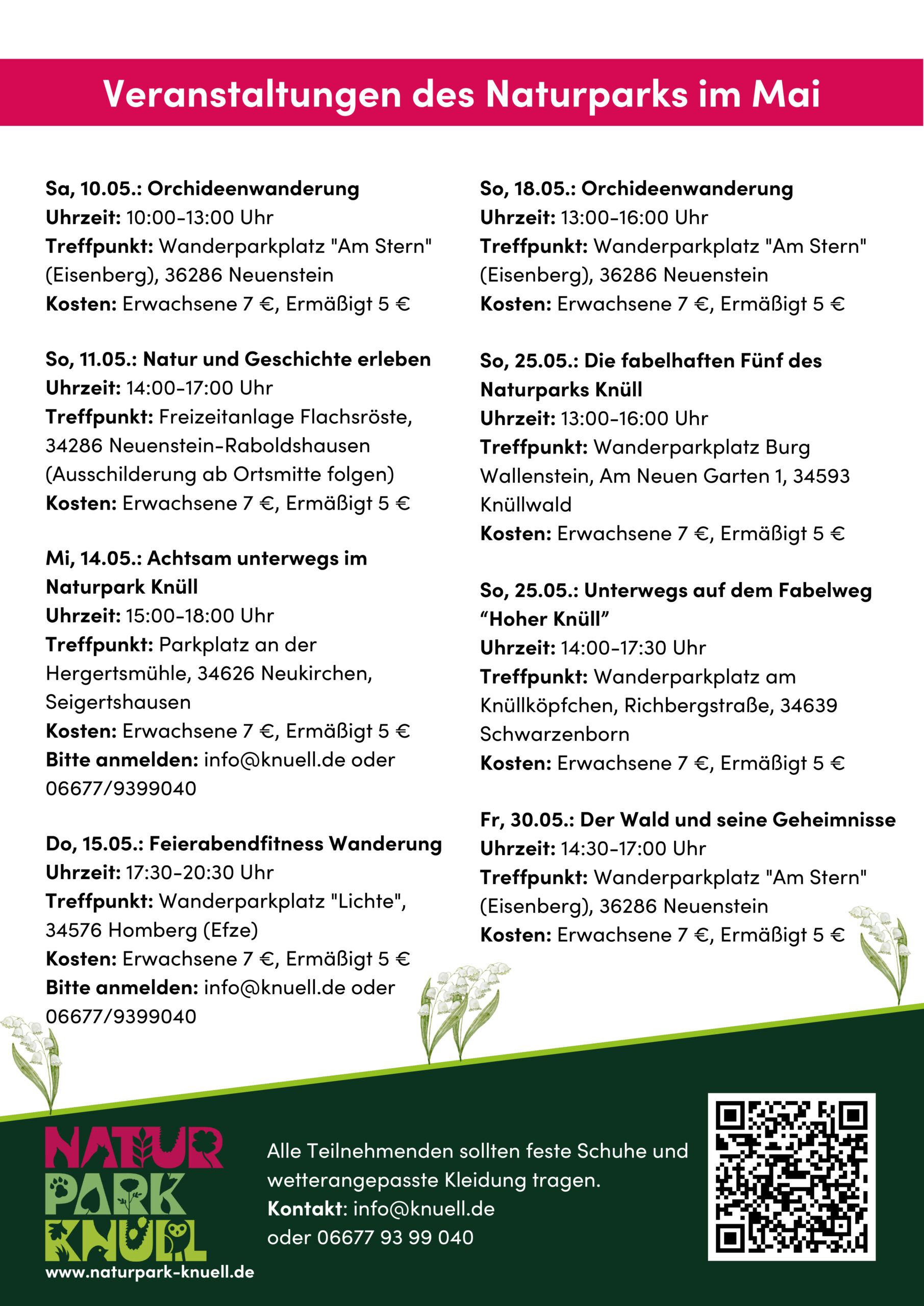 Detailliertere Beschreibungen zu den Veranstaltungen gibt es auf der Internetseite www.naturpark-knuell.de