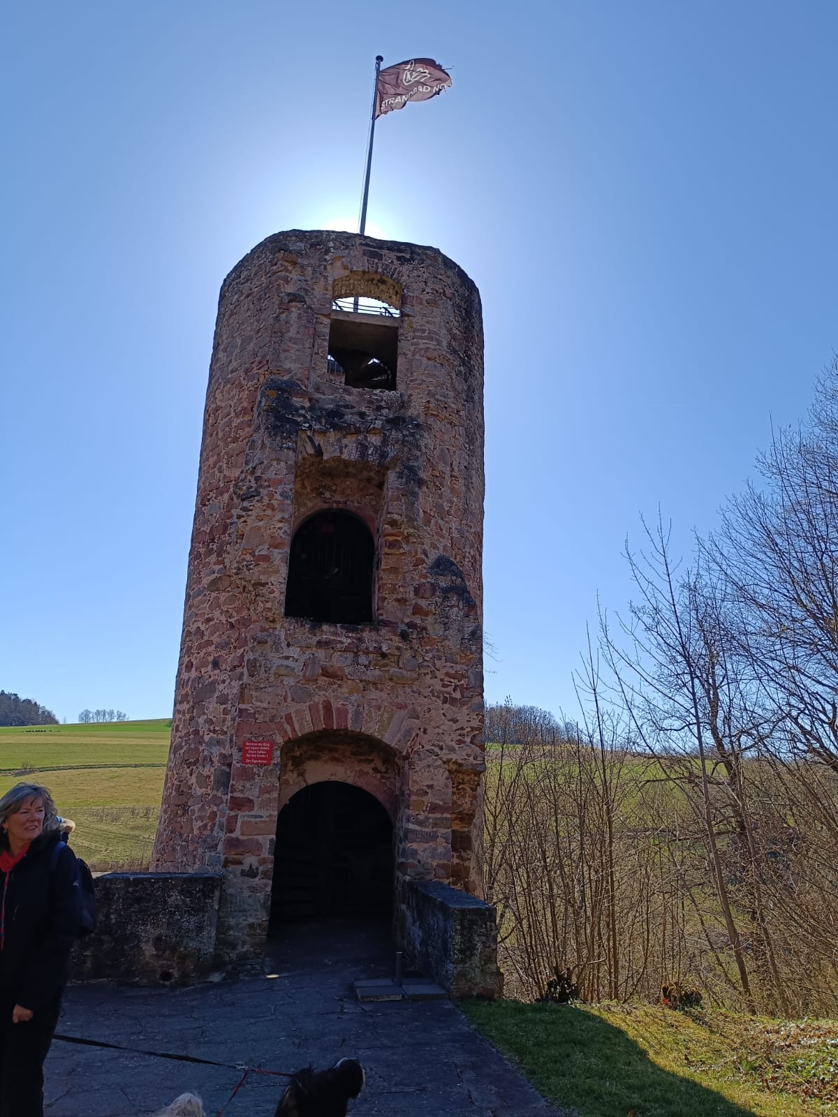 Ein gelungener April-Ausflug mit Sonne, Burgruine und Kuchen: Trotz frischer Temperaturen ließ sich eine gut gelaunte Gruppe des KGV Neukirchen nicht davon abhalten, gemeinsam den Schlossbrunnenweg in Wallenstein zu erkunden. Unter strahlender Frühlingssonne führte die Wanderung entlang des Fabelwegs durch die malerische Landschaft des Rotkäppchenlands – mit einem besonderen Höhepunkt: dem Besuch der Burgruine Wallenstein. Dort stand neben der Besichtigung auch eine kleine Besteigung auf dem Programm, die mit einem herrlichen Ausblick belohnte.